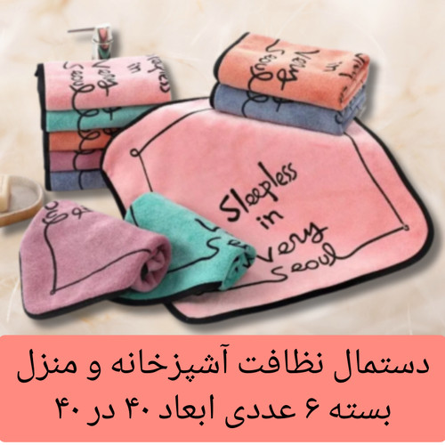 دستمال نظافت بسته ۶ عددی ۴۰ × ۴۰ مدل اسلیپ حوله مسافرتی نانو پولیشی ورزشی خانه سلام