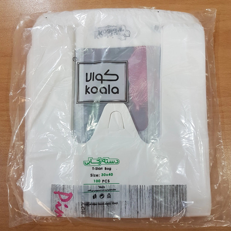 کیسه خرید کوالا 40در30 کیسه فروشگاهی بسته 100 عددی دسته رکابی نایلونی کوالا کیسه پلاستیکی عمده فروشی خانه سلام