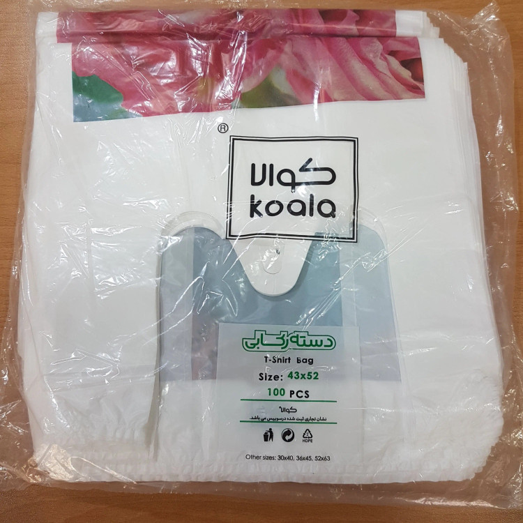 کیسه خرید کوالا 52در43 کیسه فروشگاهی بسته 100عددی دسته رکابی نایلونی کوالا کیسه خرید پلاستیکی عمده فروشی خانه سلام