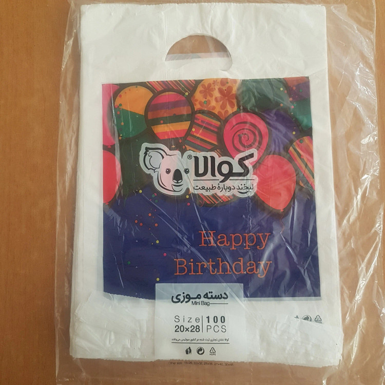 کیسه خرید کوالا 28در20 کیسه فروشگاهی بسته 100 عدد کیسه خرید دسته موزی نایلونی کوالا عمده فروشی خانه سلام