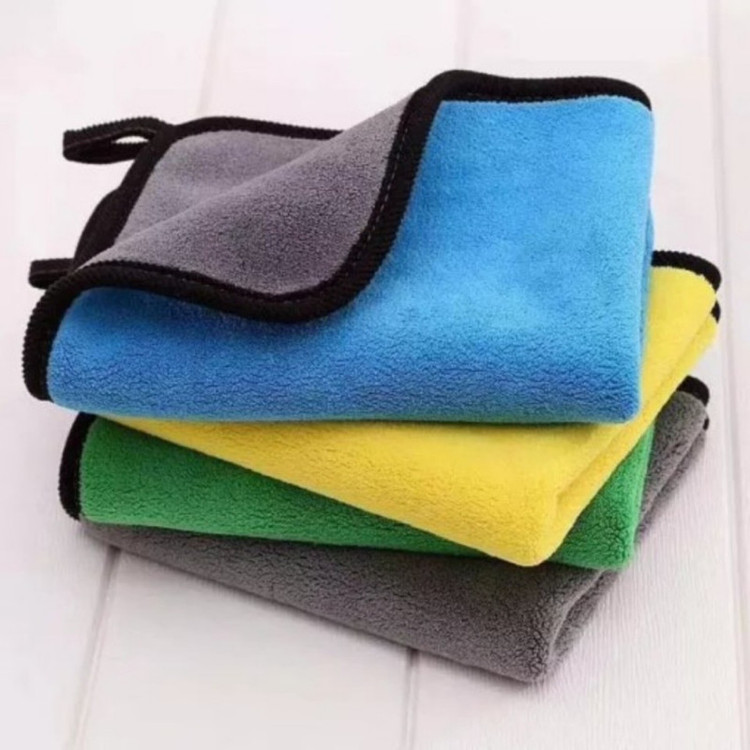 بسته 36 عددی دستمال دورو نظافت خودرو مدل 70 گرمی که هر بسته 36 عددی حدود 2500 گرم وزن دارد دستمال حوله ای ضخیم دورو میکرو فایبر با جذب قدرت جذب عالی مناسب سرامیک خودرو و پولیش کاری و نانو کاری و کارواش و ظروف آشپزخانه و حوله دم دستی می باشد دستمال حوله ای دو رو میکروفایبر از الیاف با کیفیت ساخته شده است که قدرت بسیار بالایی در جذب و آبگیری را دارد و ضمنا بسیار لطیف است و روی سطوح خراش ایجاد نمی کند . سایز این دستمال 30 ×40 می باشد. این دستمال علاوه بر نظافت سطوح، حوله ای مناسب برای خشک کردن و آب گیری سطوح حساس و دارای رنگ مانند بدنه خودرو و ظروف حساس نیز می باشد. هم چنین در هنگام استفاده مکرر بدون تغییر شکل باقی می ماند .