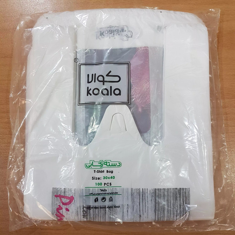 کیسه خرید کوالا 40×30 کیسه فروشگاهی بسته 100 عددی دسته رکابی نایلونی کوالا کیسه پلاستیکی عمده فروشی خانه سلام