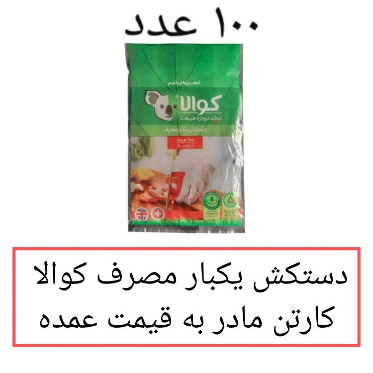 کارتن مادر دستکش یکبار مصرف کوالا ۴۰ بسته 100 عددی مدل بایو ( تجزیه پذیر ) دستکش یکبار مصرف کوالا بسته 100 عددی ساخته شده از مواد اولیه نو و بهداستی و تجزیه پذیر ( دوستدار محیط زیست ) قیمت مصرف کننده درج شده روی بسته کالا ۱۹۹۰۰ تومان است . پخش یاس تهران