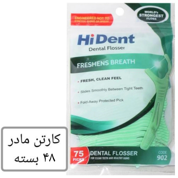 بسته 48 عددی نخ دندان کمانی هایدنت با قیمت عمده ویژه فروشگاه داران و مصرف کنندگان عمده . هر بسته شامل ۷۵ عدد نخ دندان کمانی است . 💯 توصیه می شود قبل از مسواک زدن دندان های خود را نخ دندان بکشید. ❇️ وقتی نخ دندان می کشید ، معمولاً ذرات غذا و پلاک های اطراف دندان را شل می کنید و عمل مسواک زدن به از بین بردن پلاک ها و ذرات پاک شده از دندان و خط لثه کمک می کند. ✅ نخ دندان کشیدن منظم نقش مهمی در بهداشت دندان شما دارد و باعث می شود، پلاک هایی که بین دندان ها و در امتداد خط لثه شما با گذشت زمان جمع شده اند، تمیز شده و دندان را از خطر پوسیدگی و بیماری لثه نجات دهد. راستی ، نگران نباشید ❗ نخ دندان های دسته دار و متری هایدنت این نگرانی شما رو برطرف کرده است 🤝 نخ دندان کمانی هایدنت 75 عددی کد 902 نخ دندان 75 عددی hi dent با کد 902 این نخ دندان کمانی همراه با خلال دندان در انتهای دسته تولید شده است.