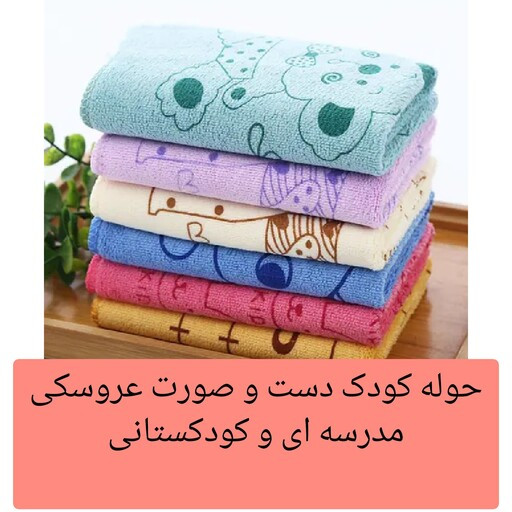 حوله دست و صورت کودک کارتونی 6 عددی مدرسه ای سایز 35در75 حوله مسافرتی ورزشی نانو میکرو فایبر حوله دست صورت خانه سلام