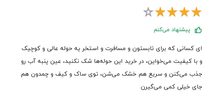 شاید گاهی برایتان اتفاق افتاده باشد که هنگام مسافرت از بس چمدانتان پر بوده نتوانستید حوله لباسی شخصی خود را با خود ببرید چون حجم زیادی را اشغال میکرده و شمکل ساز بوده است از ویژگی های برجسته حوله تنپوش پیش روش شما این است که حجم بسیار کمی دارد و این موضوع به خاطر متریال و ماده تشکیل دهنده این وله است مواد تشکیل دهنده این محصول ویسکوز یا همان الیاف گیاهی به دست آمده از باقیمانده درختان، گیاهان و .... هست که علاوه بر این که فوق العاده جنس نرم ولطیفی دارد، شاید به جرات بتوان گفت دو یا سه برابر وزن خود آب جذب میکند به خاطر همان شاید تعجب برانگیز باشد اینکه این حوله با این حجم کم و جنس به این نازکی چه طور میتواند این مقدار آب راجذب کند فقط کافی است یه مرتبه امتحان کنید تا به صداقت ما نسبت به خو اطمینان پیدا کنید نکته حائز اهمیت در این محصول این است که حس خوشایند گرم کنندگی بدن درهنگام استفاده لذت مصرف این محصول را دوچندان میکند خانه سلام ( مهدی زحمتکش )